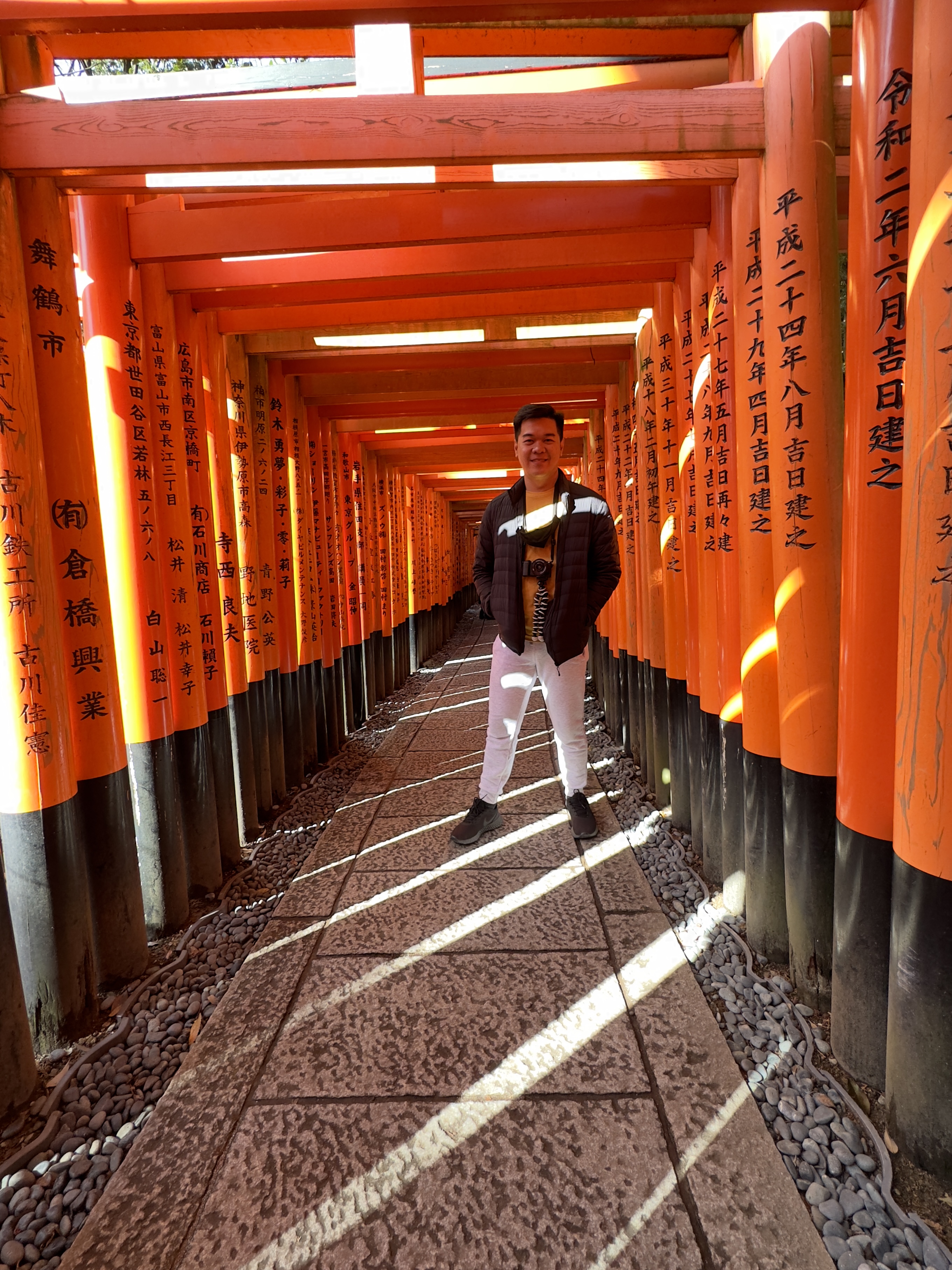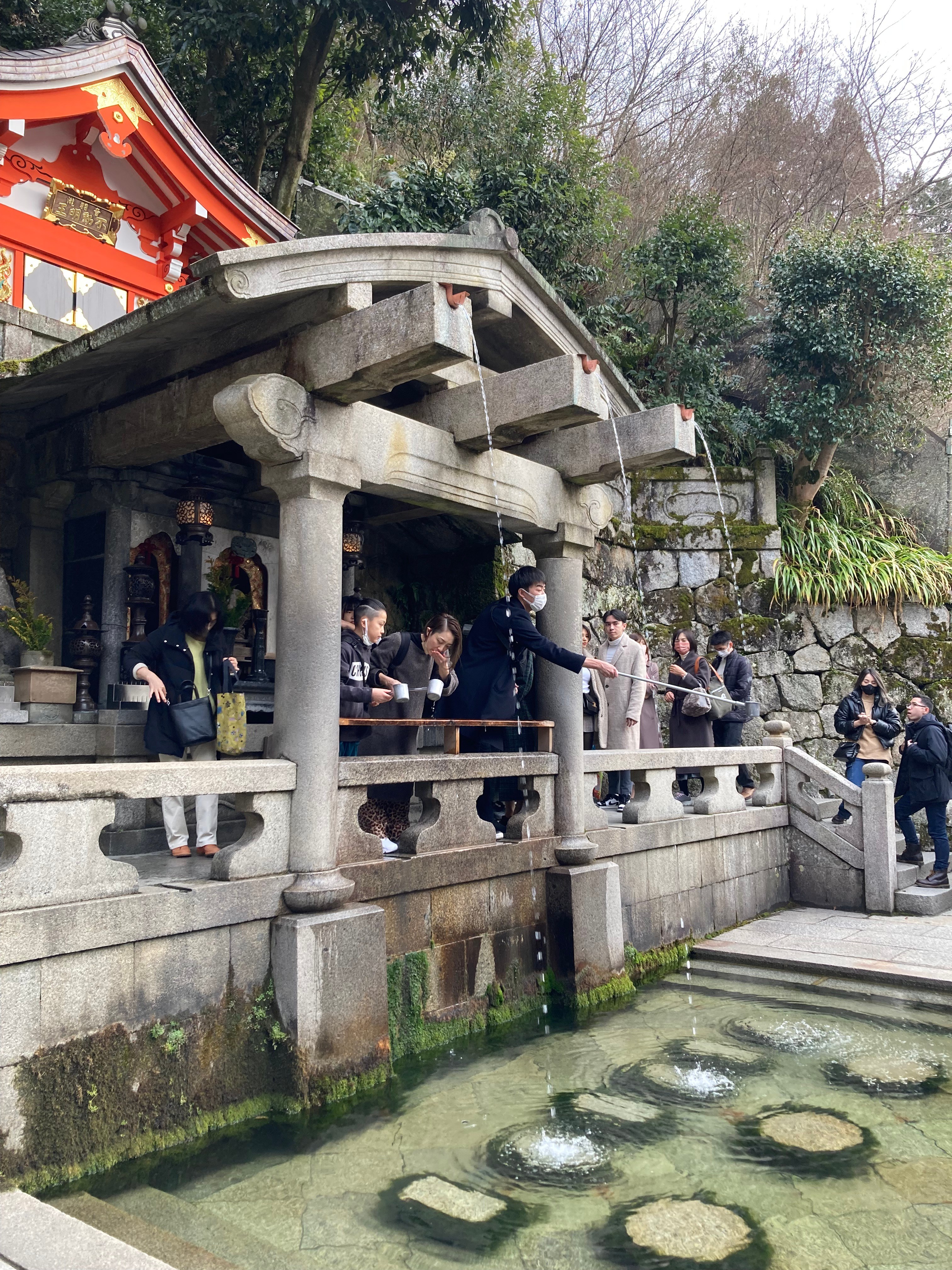 First stop: Fushimi Inari Shrine. Famous for its thousands of bright vermillion torii gates, this sacred site is dedicated to Inari, the Shinto god of rice and prosperity. Before walking through the tunnels of gates, we tried our luck with an omikuji (a paper fortune). After shaking a wooden box and drawing a slip, we read our fortunes and tied any bad ones to the designated rack—leaving the bad luck behind!