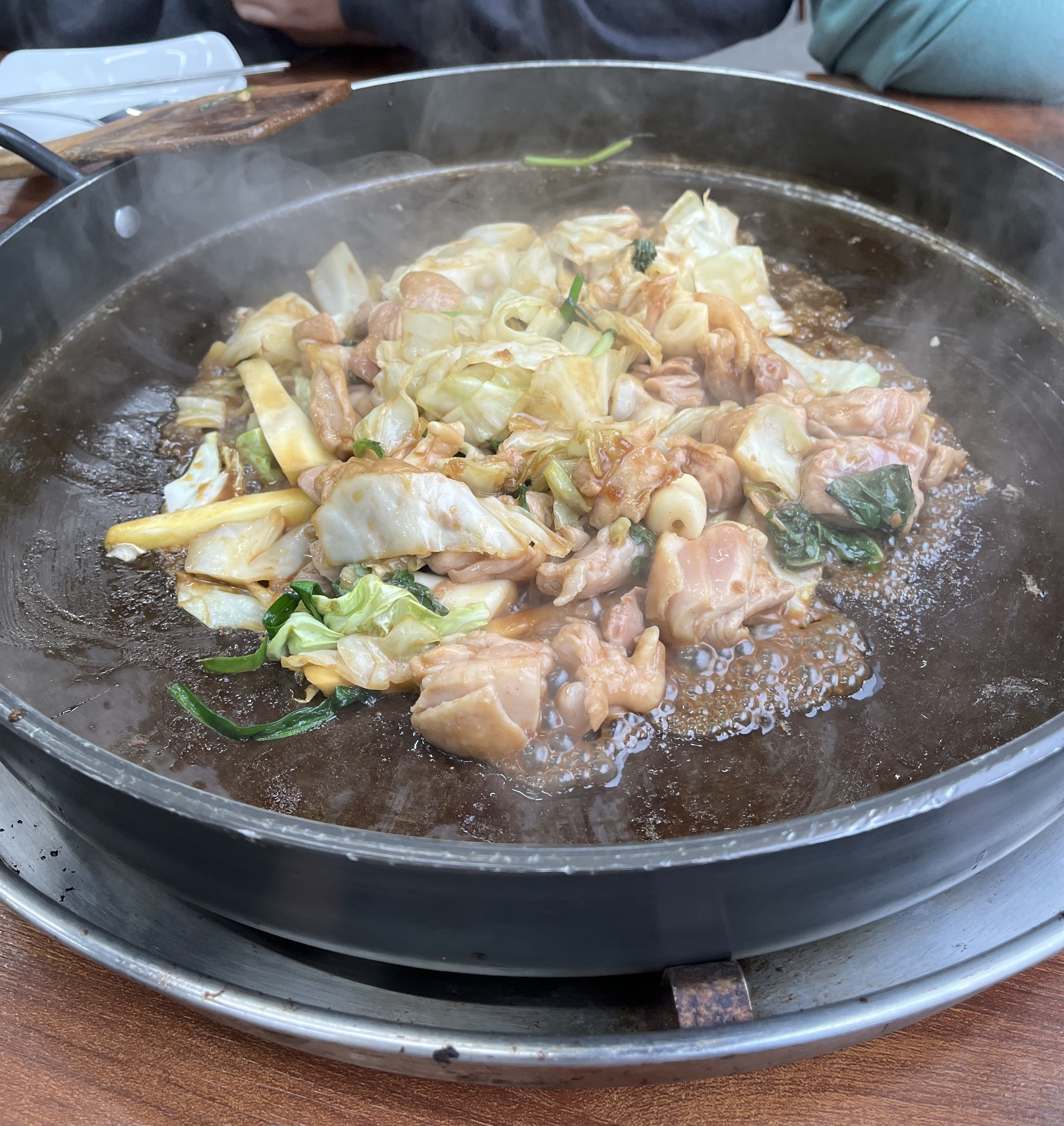 Our tour guide took us to a local restaurant that serves soy sauce dakgalbi—a Chuncheon specialty. Most people know the spicy gochujang version, but this one is savory, a little sweet, and not spicy at all. The tender chicken, vegetables, and rich soy sauce blend together really well.