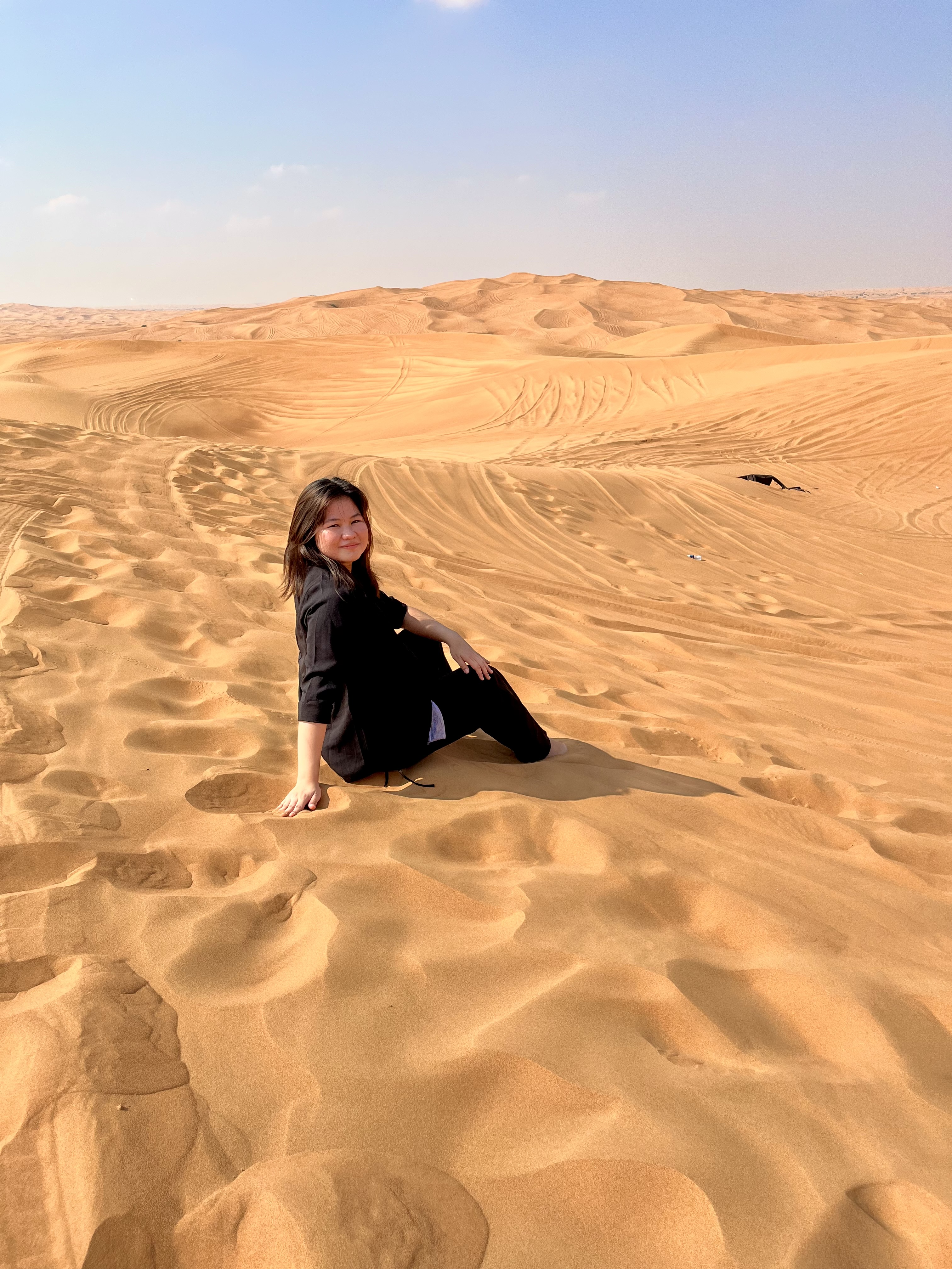 Next is a 30-minute dune bashing inside a 4×4. It was so thrilling and exciting to go over and around the desert hills although there were times it could get too bumpy and scary. We parked on top of one of the hills to experience sandboarding. It’s so much harder than it looks on TV but it was a fun experience all in all. The morning desert safari costs more or less PHP 1400.00 per person.