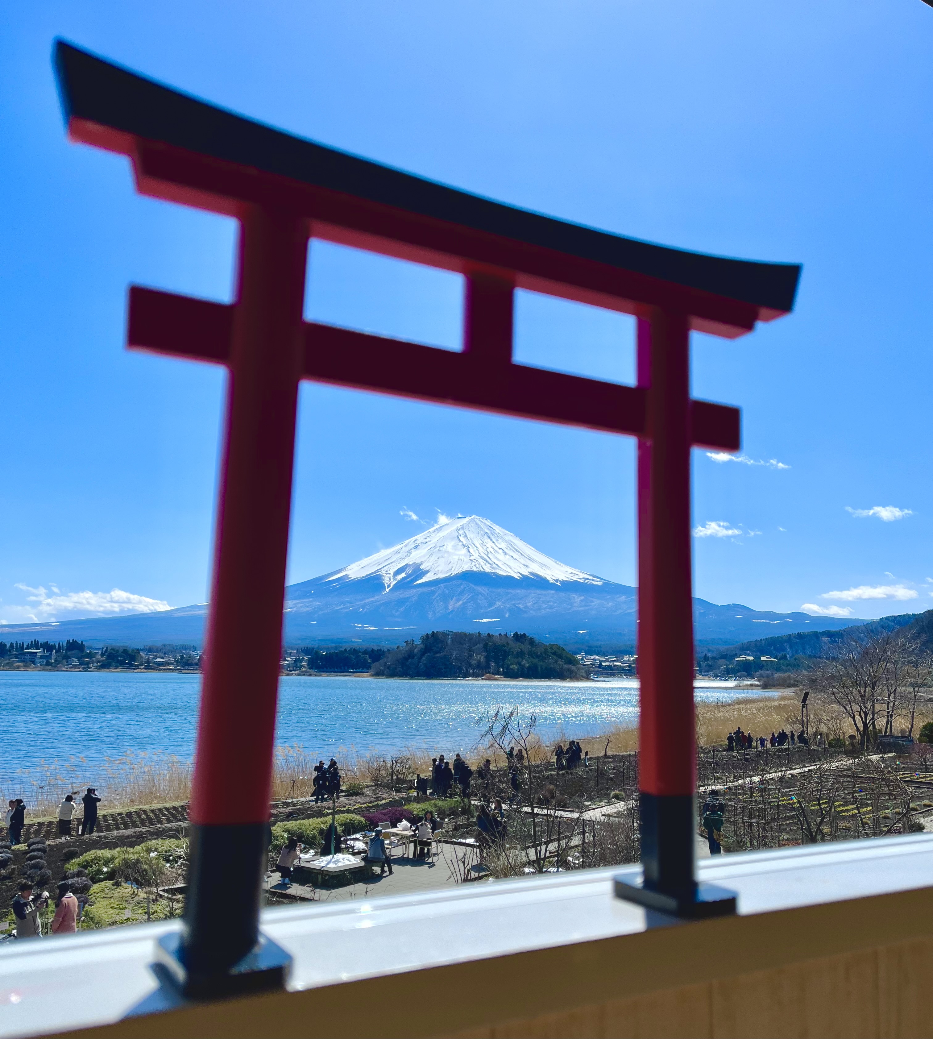 Next, we head to Oishi Park, known for its incredible seasonal flowers and perfect views of Mt. Fuji across Lake Kawaguchi. We went up to the second floor of Oishi Park Cafe to enjoy an unobstructed view of Mt. Fuji while enjoying a cone of Cremia ice cream.