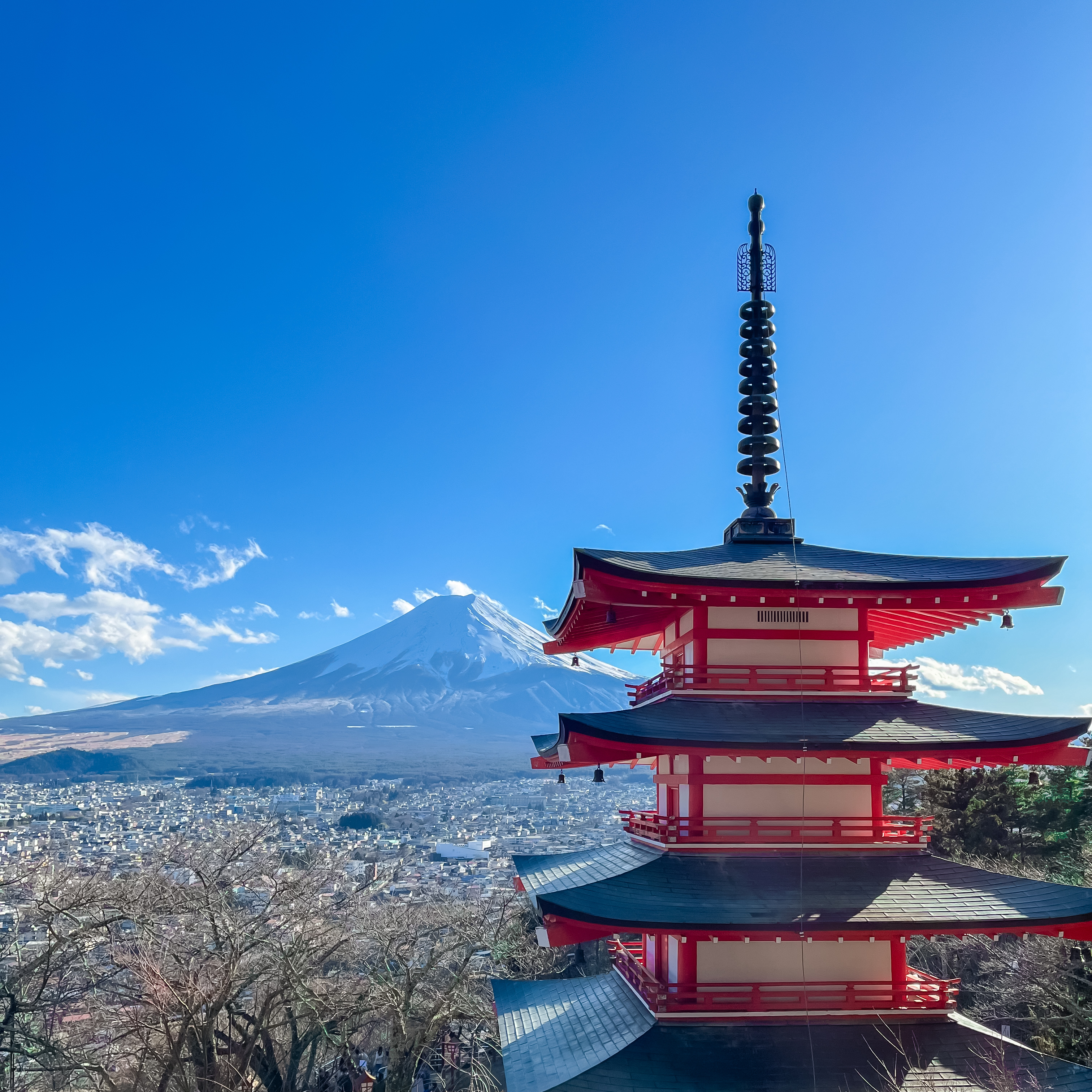 Our final stop is Arakurayama Sengen Shrine, home to the iconic Chureito Pagoda. This is one of the most famous viewpoints of Mt. Fuji, where the five-story pagoda perfectly frames the mountain in the distance. But one has to climb 398 steep steps to enjoy this magnificent view.