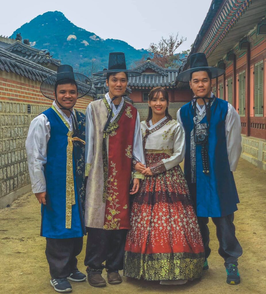 A Hanbok is Korea’s traditional clothing worn during special occasions such as festivals and ceremonies. The men’s hanbok was easy to put on and very comfortable. The shop didn’t have a lot of styles to choose from when it comes to the men’s, but the women’s section was stocked with extravagant patterns and colors. Vina looked pretty in her Maroon dress with make-up and accessories courtesy of the boutique.