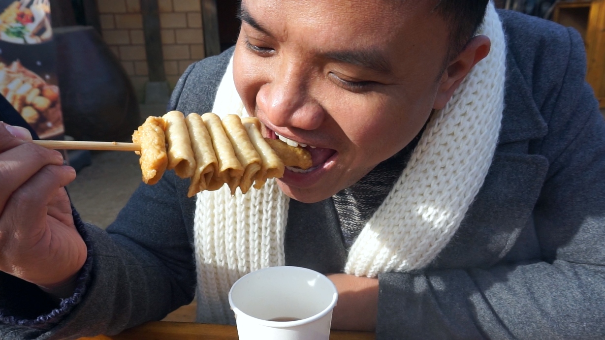 We rested for a while and snacked on some Odeng and steamed buns, perfect for the chilly weather.