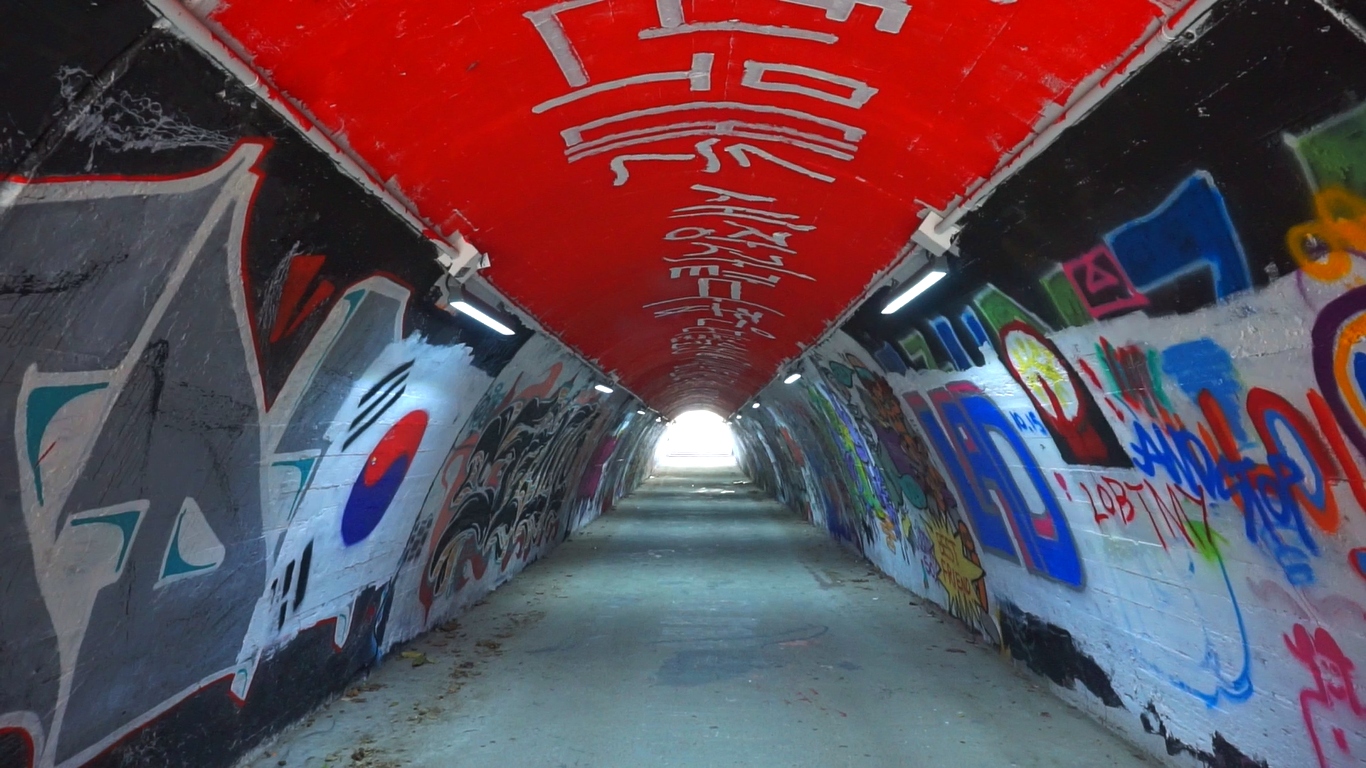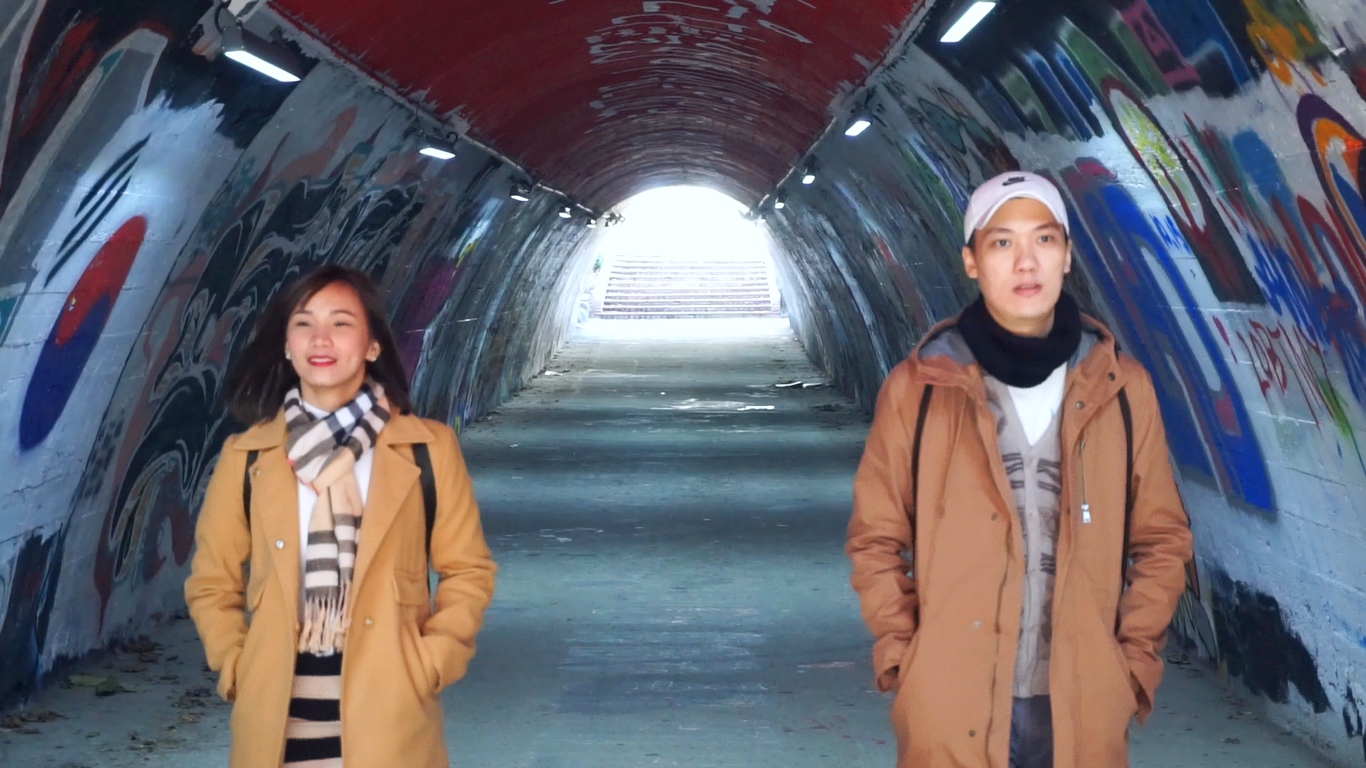 Jan and Vinna did not miss the chance to recreate this scene. The walls of the tunnel are filled with cool street artworks that has probably been painted over numerous times.