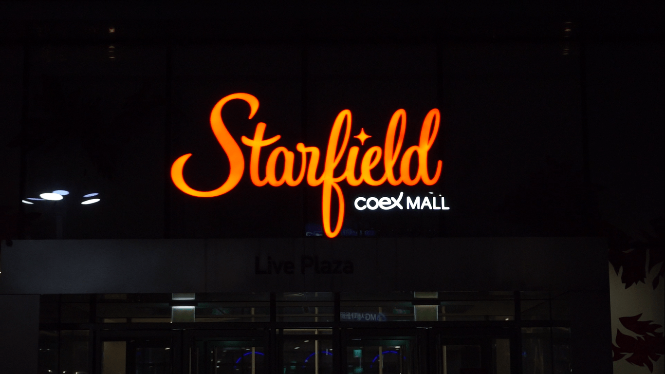 Tourists come here to take selfies and I must admit, I am one of them. I am not into reading books. The natural light beaming through the glass windows in the day and the glowing neon lights in their 13m-tall bookshelves at night make Starfield the hottest Instagram spot in Seoul.