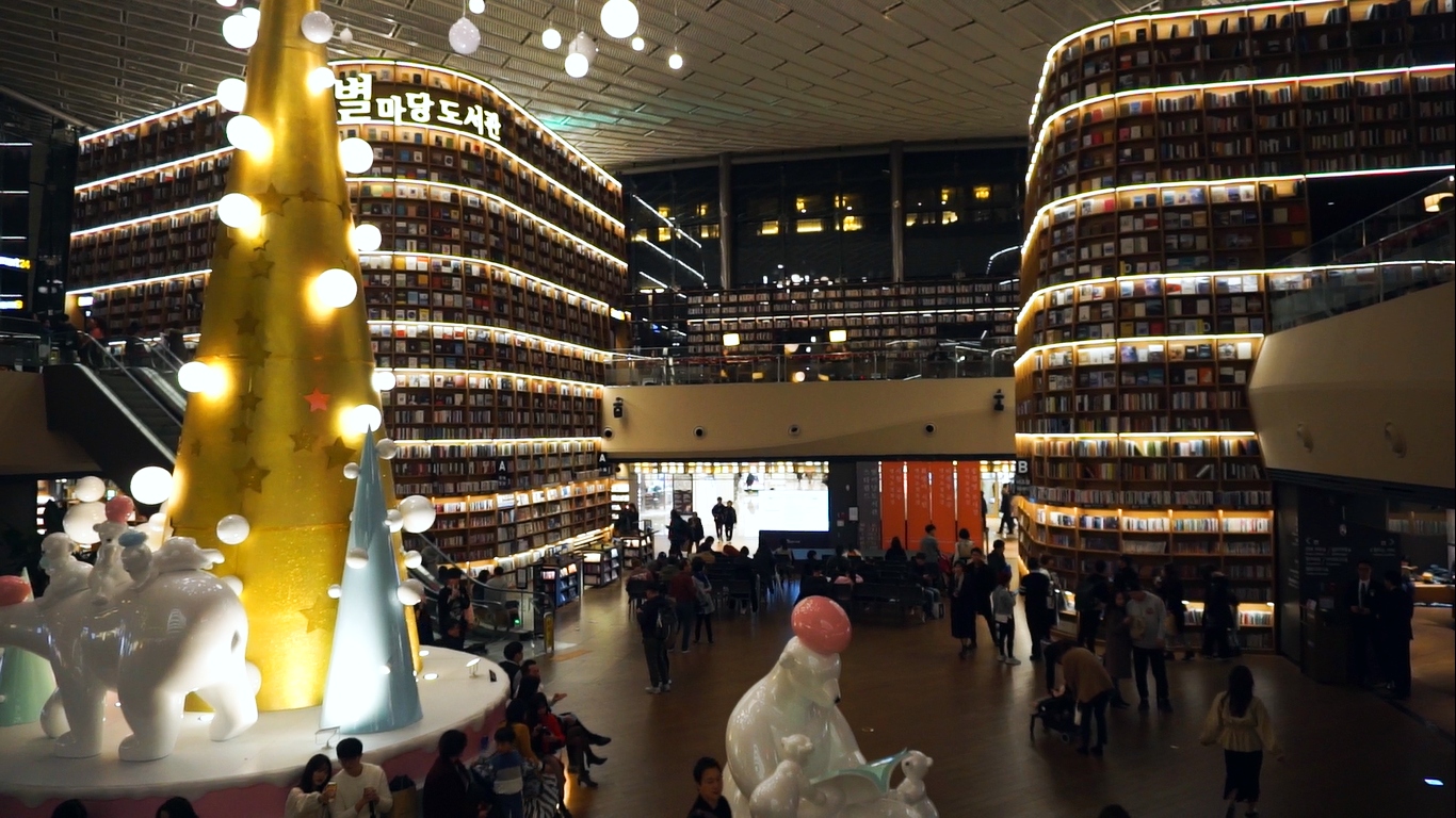 We hopped on the bus to get to Starfield Library, an open public space conveniently located inside the COEX Mall. After shopping, people can sit down, relax and read through over 50,000 books and magazines.
